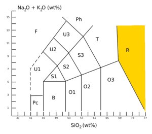- ^ Le Bas, M. J.; Streckeisen, A. L. (1991). "The IUGS systematics of igneous rocks". Journal of the Geological Society. 148 (5): 825–833. Bibcode:1991JGSoc.148..825L. CiteSeerX 10.1.1.692.4446. doi:10.1144/gsjgs.148.5.0825. S2CID 28548230.