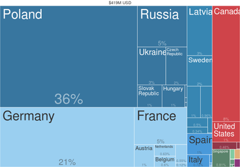 | أكبر عشر دول مصدرة للشيلم المزروع – 2012 (طن متري) | |