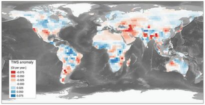 Human activity impacts how much water is stored on land. Dams retain large quantities of water, which is stored on land rather than flowing into the sea (even though the total quantity stored will vary somewhat from time to time). On the other hand, humans extract water from lakes, wetlands and underground reservoirs for food production, which often causes subsidence. Furthermore, the hydrological cycle is influenced by climate change and deforestation, which can lead to further positive and negative contributions to sea level rise. In the 20th century, these processes roughly balanced, but dam building has slowed down and is expected to stay low for the 21st century.[133][28]