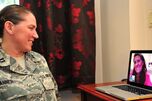 عائلات. أعلى اليمين: عائلة في فرنسا من ابنة وأم وأب. أعلى اليسار: العائلة الامبراطورية اليابانية. أسفل اليمين: ماريسا بيگل وابنتها في مرآب المدرسة. أسفل اليسار: الكابتن دون تانر، 51st Medical Operations Squadron Family Advocacy element leader, FaceTimes with her wife, Dana McCown, retired lieutenant colonel, at the Turumi Lodge on قاعدة أوسان الجوية، كوريا الجنوبية.