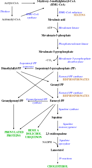 - ^ Thurnher M, Nussbaumer O, Gruenbacher G (July 2012). "Novel aspects of mevalonate pathway inhibitors as antitumor agents". Clinical Cancer Research. 18 (13): 3524–3531. doi:10.1158/1078-0432.CCR-12-0489. PMID 22529099.