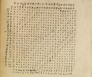 في عمله Polygraphia، طور يوهانس ترثيميوس ما يسمى بـ "Ave-Maria-Cipher" الذي يمكنه إخفاء المعلومات في مدح لاتيني لله. "Auctor Sapientissimus Conseruans Angelica Deferat Nobis Charitas Potentissimi Creatoris" على سبيل المثال يحتوي على الكلمة المخفية VICIPEDIA[5]