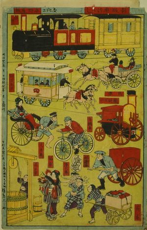 طباعة يابانية عام 1889 تظهر أشكال مختلفة من وسائل النقل