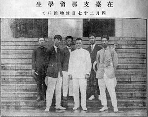 Japanese colonial policy sought to strictly segregate the Japanese and Taiwanese population until 1922.[88] Taiwanese students who moved to Japan for their studies were able to associate more freely with Japanese and took to Japanese ways more readily than their island counterparts. However full assimilation was rare. Even acculturated Taiwanese seem to have become more aware of their distinctiveness and island background while living in Japan.[89]