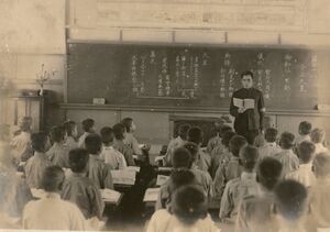 Taiwan was Japan's first colony and can be viewed as the first step in implementing their "Southern Expansion Doctrine" of the late 19th century. Japanese intentions were to turn Taiwan into a showpiece "model colony" with much effort made to improve the island's economy, public works, industry, cultural Japanization (1937 to 1945), and support the necessities of Japanese military aggression in the Asia-Pacific.[2] Japan established monopolies and by 1945, had taken over all the sales of opium, salt, camphor, tobacco, alcohol, matches, weights and measures, and petroleum in the island.[3] Most Taiwanese children did not attend schools established by Japan until primary education was made mandatory in 1943.[4][5][6]