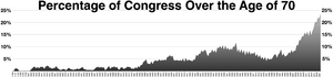 In the 1994 U.S. elections, part of the "Contract With America" Republican platform included legislation for term limits in Congress. After winning the majority, a Republican congressman brought a constitutional amendment to the House floor that proposed limiting members of the Senate to two six-year terms and members of the House to six two-year terms.[32] However, this rate of rotation was so slow (the life-tenured Supreme Court averages about 16 years) that the congressional version of term limits garnered little support among the populist backers of term limits, including U.S. Term Limits, the largest private organization pushing for congressional term limits.[ث] The bill got only a bare majority (227–204), falling short of the two-thirds majority (290) needed for constitutional amendments.[33] Three other term limit amendment bills failed to get more than 200 votes.[ج]