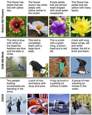 5. ^ أ ب ت Reed, Scott; Akata, Zeynep; Logeswaran, Lajanugen; Schiele, Bernt; Lee, Honglak (June 2016). "Generative Adversarial Text to Image Synthesis" (PDF). International Conference on Machine Learning. arXiv:1605.05396.