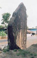 [14] The Ramavarmapuram monument is in granite and is of the menhir type. The monument in Ramavarmapuram is 15 أقدام (4.6 m) in height and 12 أقدام 4 بوصات (3.76 m) wide. Since 1944, it has been protected by the Department of Archaeology. The monument is locally known as Padakkallu or Pulachikkallu. These menhirs are memorials put up at burial sites for the departed souls. They belong to the Megalithic Age of Kerala, which is roughly estimated between 1000 BCE and 500 CE.[15] All such monuments have not been dated exactly. Some experts are of the view that these are the remnants of the Neolithic Age in the development of human technology. The Ramavarmapuram menhir is also believed to be a monument belonging to the Sangam period in the South Indian history.[16]