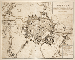 Tournai or Tournay (/tʊərˈneɪ/ toor-NAY, فرنسية: [tuʁnɛ] [[:Media:LL-Q150 (fra)-Madehub-Tournai.wav|]] ; Picard: Tornai; والون: Tornè [tɔʀnɛ] [[:Media:Wa pcd Tornè.ogg|]] ; هولندية: Doornik [ˈdoːrnɪk] [[:Media:Nl-Doornik.ogg|]] ) is a city and municipality of Wallonia located in the Province of Hainaut, Belgium. It lies 89 km (55 mi) by road southwest of the centre of Brussels on the river Scheldt,[2] and is part of Eurometropolis Lille–Kortrijk–Tournai,[3] In 2022, the municipality of Tournai had an estimated population of 68,518 people.[4]