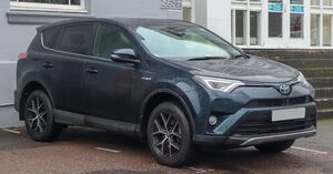 The Toyota RAV4 (يابانية: トヨタ・RAV4, Hepburn: Toyota Ravufō) is a compact crossover SUV produced by the Japanese automobile manufacturer Toyota. Considered the first ever compact crossover SUV,[1] it made its debut in Japan and Europe in 1994,[2] and in North America in 1995, being launched in January 1996.[3] The vehicle was designed for consumers wanting a vehicle that had most of the benefits of SUVs, such as increased cargo room, higher visibility, and the option of full-time four-wheel drive, along with the manoeuvrability and fuel economy of a compact car. The vehicle's name is an abbreviation of "Recreational Active Vehicle with 4-wheel drive",[4] or "Robust Accurate Vehicle with 4-wheel drive",[5] although not all models come equipped with the four-wheel drive system.