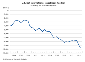 وحسب پول كروگمان، "حقاً أن الأجانب الآن يمسكون بسندات مطالبة ضخمة على الولايات المتحدة، بما في ذلك قدر معتبر من الدين الحكومي. إلا أن قيمة كل دولار في المستندات الأجنبية على أمريكا يقابلها ما قيمته 89 سنت من مطالبات أمريكية على أجانب. ولأن الأجانب يفضلون إيداع استثماراتهم الأمريكية في أصول آمنة، منخفضة العائد، فإن أمريكا في الواقع تربح المزيد من أصولها في الخارج أكثر مما تدفع للمستثمرين الأجانب. لو الصورة في ذهنك هي لأمة غارقة في الديون للصين، فمعلوماتك خاطئة. كما أننا لا نتجه بسرعة في اتجاه تلك الصورة الخاطئة."[66]