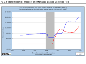 قام مجلس الاحتياطي الفيدرالي الأمريكي بتوسيع العرض النقدي بشكل كبير في أعقاب أزمة الرهن العقاري. وهذا يزيد من خطر التضخم بمجرد استئناف النمو الاقتصادي بمعدلاته التاريخية.[بحاجة لمصدر] صرح بن برنانكي في يناير 2013: "لقد قمنا بزيادة القاعدة النقدية، وهي كمية الاحتياطيات التي تحتفظ بها البنوك مع الاحتياطي الفدرالي. هناك بعض الناس الذين يعتقدون أن ذلك سيكون تضخمياً. أنا شخصياً لا أرى أدلة كثيرة على ذلك. التضخم كما ذكرت كان منخفضاً جداً. توقعات التضخم لا تزال مترسخة ... أعتقد أن لدينا جميع الأدوات التي نحتاجها للتراجع عن حافز سياستنا النقدية وإزالتها قبل أن يصبح التضخم مشكلة".[97]