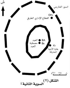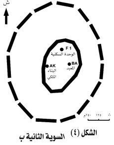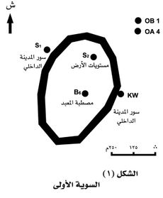 مصطبة المعبد (B6) وسور المدينة الداخلي (KW) الذي تبلغ ثخانته ستة أمتار والخندق المائي والمقبرة. كما وُجدت أوان فخارية تحمل زخارف هندسية مطلية باللونين الأحمر والأسود، بطلاء مشابه للطلاء القرمزي Scarlet الذي عُثر عليه في منطقة ديالى ونيبور في جنوبي العراق. ووُجدت أيضاً جرار ذات قواعد إضافة إلى الكؤوس والأواني من نوع الفخار المعدني Metallic -Ware والدبابيس البرونزية وغيرها (الشكل 1).