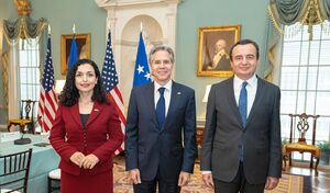 121. ^ Osmani, President of the Republic of Kosovo - Vjosa. "Presidentja Osmani udhëtoi në Washington D.C. me ftesë të Sekretarit të Shtetit të SHBA-ve, Antony Blinken". President of the Republic of Kosovo - Vjosa Osmani. Retrieved 9 July 2024.