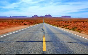 The West, as the most recently settled part of the United States, is often known for broad highways and open space. Pictured is a road in Utah to Monument Valley on the Navajo Nation.